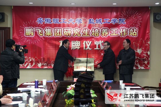 12月10日,由鵬飛集團聯(lián)合安徽理工大學(xué)、鹽城工學(xué)院創(chuàng)建的研究生培養(yǎng)工作站在江蘇鵬飛集團公司舉行揭牌儀式,江蘇鵬飛集團副總經(jīng)理周延標(biāo)介紹了與安徽理工大學(xué)、鹽城工學(xué)校產(chǎn)學(xué)研合作情況,鹽城工學(xué)院邵榮副校長、安徽理工大學(xué)王其東副校長對研究生培養(yǎng)工作站的成立提出新的工作要求,大公鎮(zhèn)政府、海安縣科技局領(lǐng)導(dǎo)做了重要講話,鹽城工學(xué)院邵榮副校長、王其東副校長、鵬飛集團副總經(jīng)理周延標(biāo)在三方合作協(xié)議上簽字,三方共同為鵬飛集團研究生工作站揭牌,會議結(jié)束后,大家參觀了江蘇鵬飛節(jié)能環(huán)保產(chǎn)業(yè)技術(shù)研究院和鵬飛集團全面建成投產(chǎn)后的北廠新區(qū)。