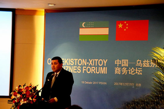 為促進中國和烏茲別克斯坦兩國商務往來,推動兩國經(jīng)貿(mào)關系不斷鞏固和深化,2017年12月19日在中國北京由烏茲別克斯坦駐華大使館聯(lián)合烏茲別克斯坦工商會主辦中國—烏茲別克斯坦商會論壇。論壇重點圍繞清潔能源、紡織、農(nóng)業(yè)、化工、醫(yī)藥、基礎設施、建材等領域的投資合作,緊扣“合作共贏、共同發(fā)展”的主題,旨在推動雙方經(jīng)貿(mào)領域的深層次合作。