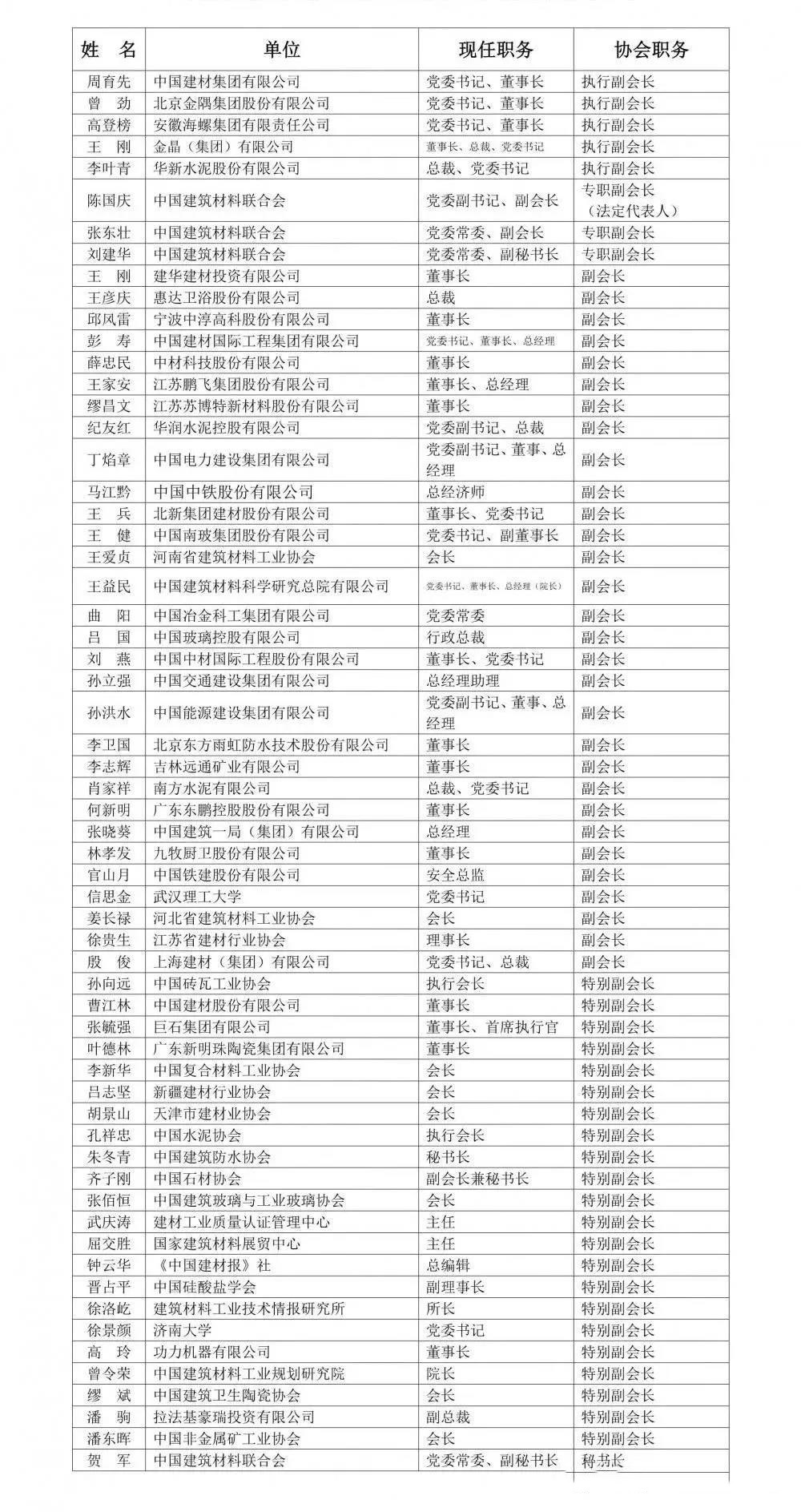中國建筑材料聯(lián)合會第六屆理事會負(fù)責(zé)人名單