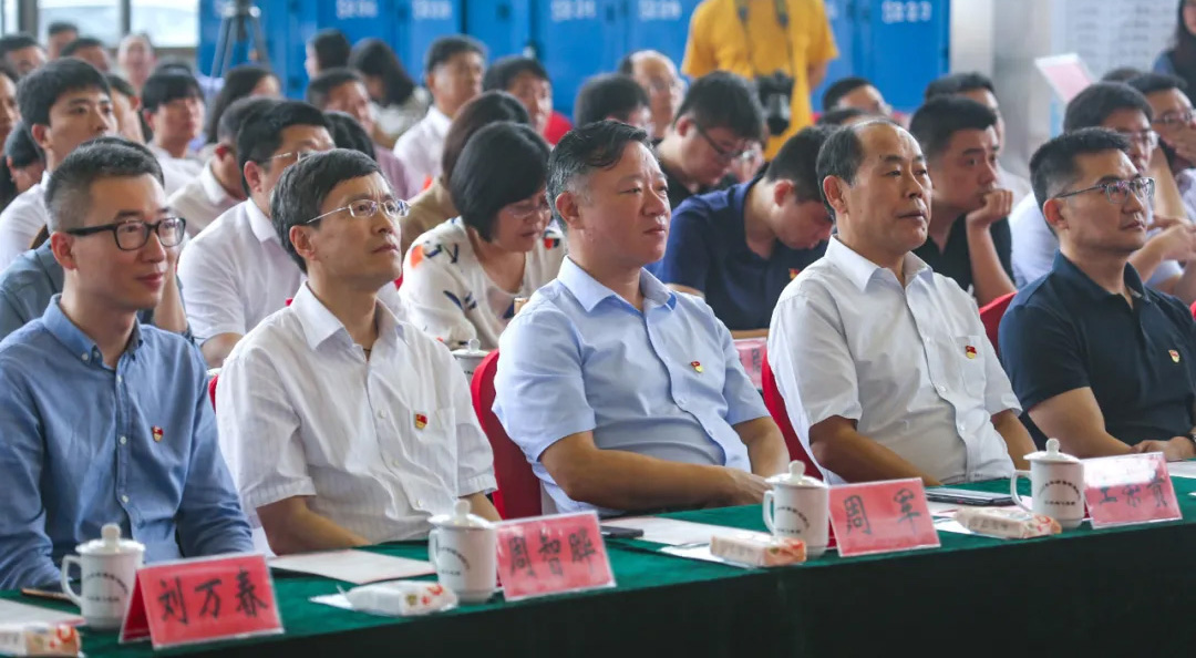 南通市政協(xié)專職常委、一級調(diào)研員,南通市委黨史學習教育第八巡回指導組組長李振沖,南通市紀委監(jiān)委派駐市交通運輸局紀檢監(jiān)察組組長、南通市委黨史學習教育第八巡回指導組副組長王鵬,國網(wǎng)南通供電公司副總經(jīng)理李秋實,海安市委常委、宣傳部部長王榮貴,南通市委辦公室四級調(diào)研員周軍,南通市紀委監(jiān)委派駐市交通局紀檢監(jiān)察組副組長江金荷,南通市委宣傳部新聞發(fā)布管理處副處長周智曄,海安市委組織部副部長、“兩新”工委書記吳蘭,海安市委宣傳部常務(wù)副部長劉萬春,海安市委宣傳部副部長、市新聞出版局局長陳琳,海安市發(fā)展和改革委員會主任周小軍,國網(wǎng)海安市供電公司總經(jīng)理唐玉婷,江蘇鵬飛集團黨委書記、董事長王家安,大公鎮(zhèn)黨委書記金山存,大公鎮(zhèn)黨委副書記、鎮(zhèn)長魯競出席活動。海安市委組織部、宣傳部、發(fā)改委、財政局、行政審批局、科技局、商務(wù)局、生態(tài)環(huán)境局、自然資源和規(guī)劃局、住建局、建管局、國網(wǎng)海安市供電公司相關(guān)負責人,開發(fā)區(qū)、高新區(qū)分管黨建負責人,各區(qū)鎮(zhèn)、街道組織委員、宣傳委員,大公鎮(zhèn)全體黨政負責人,大公鎮(zhèn)各局辦(中心)負責人、正副局長,工青婦負責人,各村支書,鵬飛項目服務(wù)工作專班全體人員,供電公司員工代表,鵬飛集團員工代表等參加活動。