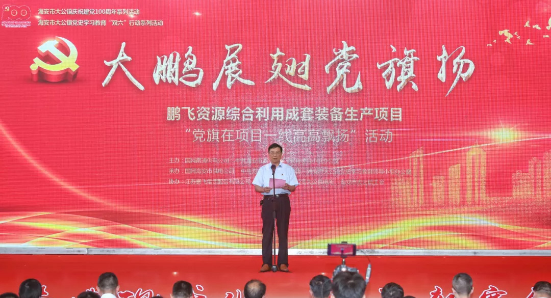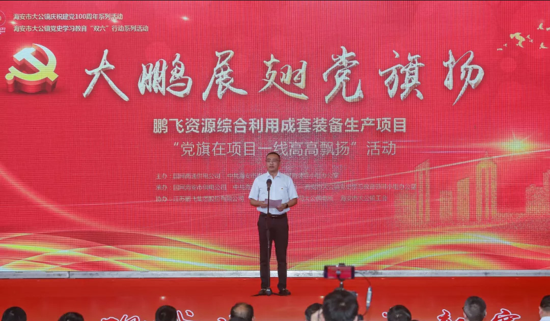 “將企業(yè)生產(chǎn)經(jīng)營與項目建設(shè)融入黨史學習教育,以黨建為引領(lǐng),讓支部建在項目上、黨旗飄在陣地上、黨員沖在火線上、關(guān)愛工人在心上,切實讓黨旗在項目一線高高飄揚……”6月16日下午,鵬飛資源綜合利用成套裝備生產(chǎn)項目“黨旗在項目一線高高飄揚”活動舉行,這也是海安市推動黨史學習教育“走深”“走心”“走實”,黨員干部在項目一線“建強組織筑堡壘、做優(yōu)服務(wù)強項目、為民辦事解難題”的真實寫照。
