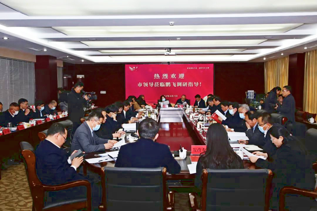 3月7日,市委書記于立忠率隊赴江蘇鵬飛集團開展調(diào)研。市委副書記、市長譚真,市人大常委會主任張亞曦,市委副書記張浩,市領(lǐng)導(dǎo)嚴(yán)長江、盧忠平、馬小飛、安譜昌、張颯參加活動。鎮(zhèn)黨委書記金山存,黨委副書記、鎮(zhèn)長魯競,副鎮(zhèn)長曹陽,江蘇鵬飛集團股份有限公司董事長王家安,等參加活動。