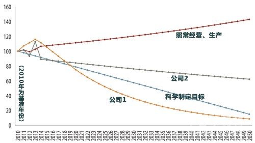 一個科學目標是致力于降低二氧化碳排放量,使公司的二氧化碳減排可以達到全球氣溫升高不超過2攝氏度所需要的水平。二氧化碳減排工作做的不足或者依然照常排放的企業(yè)需要考慮無法達到政府的排放要求他們將如何繼續(xù)生存。面對客戶對低碳產品和服務的要求,這樣的公司將面臨流失市場份額甚至資產滯留的風險。他們還會面臨違法風險,并在碳稅和碳交易框架下無利可圖。同時他們有可能成為非政府組織和媒體不斷揭露的落后企業(yè)從而令公司聲譽受損。
