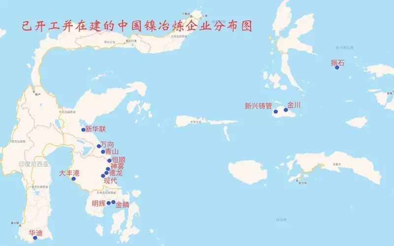 中國鎳冶煉企業(yè)項(xiàng)目在印尼分布