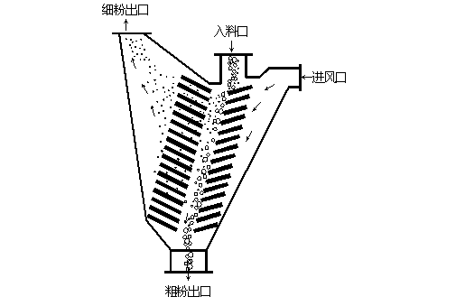 用于水泥粉磨的組合式選粉機,內(nèi)部結(jié)構(gòu)還要做一定的調(diào)整、并采用袋收塵器收集細粉,一般不用旋風筒收集細粉,因旋風筒對微細粉的收集困難,會影響水泥早期強度。