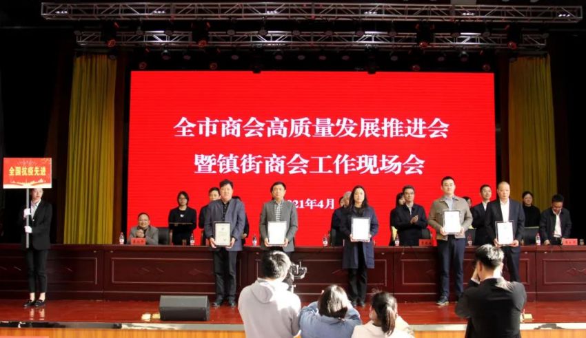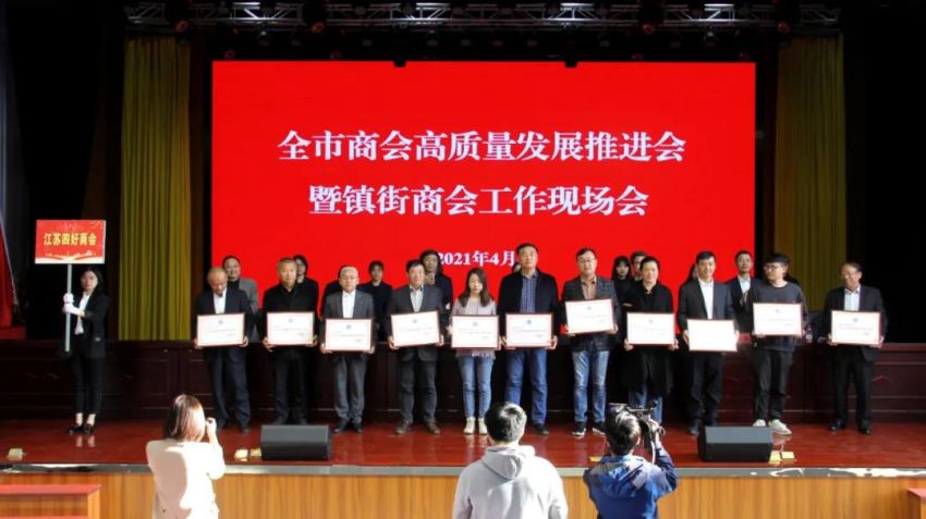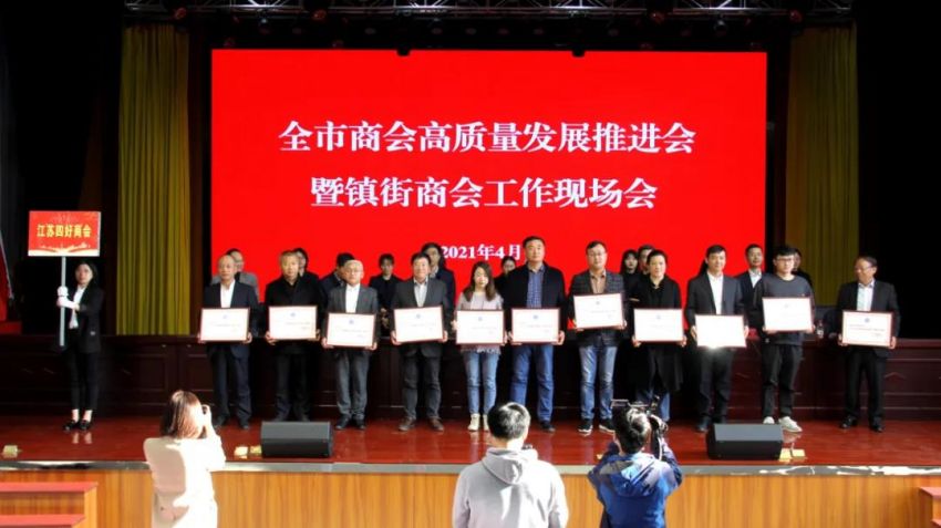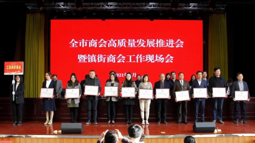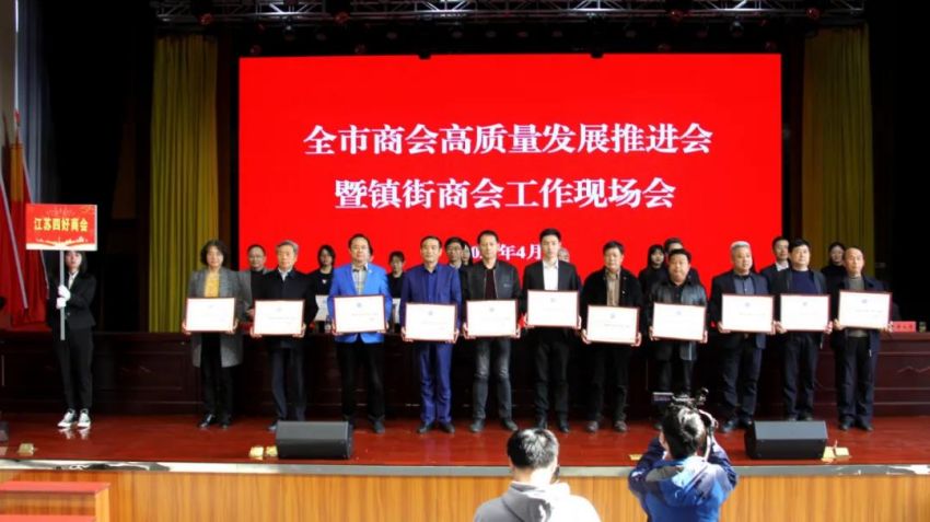 為學(xué)習(xí)貫徹中央、省商會(huì)工作會(huì)議精神,加快推進(jìn)全市商會(huì)基層組織建設(shè),推進(jìn)商會(huì)組織高質(zhì)量發(fā)展。4月19日下午,南通市工商聯(lián)(總商會(huì))在我鎮(zhèn)隆重召開“全市商會(huì)高質(zhì)量發(fā)展推進(jìn)會(huì)暨鎮(zhèn)街商會(huì)工作現(xiàn)場(chǎng)會(huì)”。南通市政府副市長(zhǎng)、一級(jí)巡視員趙聞斌,江蘇省工商聯(lián)黨組成員、副主席李曉林,南通市委統(tǒng)戰(zhàn)部副部長(zhǎng)、市工商聯(lián)黨組書記王虎,海安市委常委、組織部長(zhǎng)、統(tǒng)戰(zhàn)部長(zhǎng)張明星,南通市工商聯(lián)黨組成員、副主席羅加宏,海安市政協(xié)副主席、工商聯(lián)主席、總商會(huì)會(huì)長(zhǎng)蔡祝平,大公鎮(zhèn)黨委書記金山存,黨委副書記、鎮(zhèn)長(zhǎng)魯競(jìng)等參加活動(dòng)。出席會(huì)議的還有省工商聯(lián)、市民政局相關(guān)處室領(lǐng)導(dǎo),各縣(市)區(qū)委統(tǒng)戰(zhàn)部分管副部長(zhǎng)、工商聯(lián)主要負(fù)責(zé)人及分管領(lǐng)導(dǎo),全市各鎮(zhèn)街(園區(qū))統(tǒng)戰(zhàn)委員,商會(huì)會(huì)長(zhǎng)代表,受表彰的全國(guó)抗疫先進(jìn)典型,全國(guó)、省、市四好商會(huì),榮獲全市商會(huì)十大工作品牌的商會(huì),商會(huì)十佳會(huì)長(zhǎng),十佳秘書長(zhǎng),部分市直商(協(xié))會(huì)主要負(fù)責(zé)人,以及市工商聯(lián)相關(guān)部室人員共計(jì)250余人。