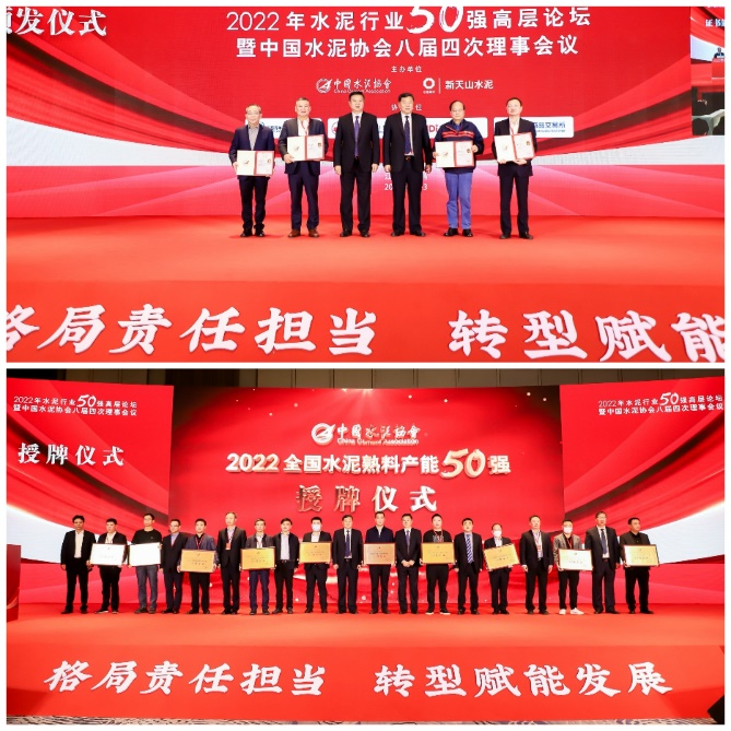 會議期間還舉辦了隆重的協(xié)會新增補變更副會長、新增常務(wù)理事單位頒發(fā)證書儀式以及2022年全國水泥熟料產(chǎn)能50強授牌儀式。