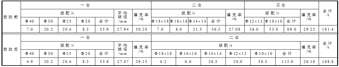 表2 技改前后研磨體級(jí)配