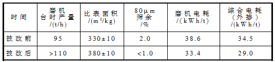 表3 技改前后粉磨系統(tǒng)生產(chǎn)技術(shù)指標(biāo)月平均值