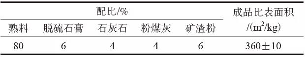 表2 P·O42.5水泥物料配比及細度指標(biāo)