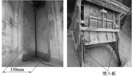 圖2 輥壓機喂料裝置通過口及饋入板